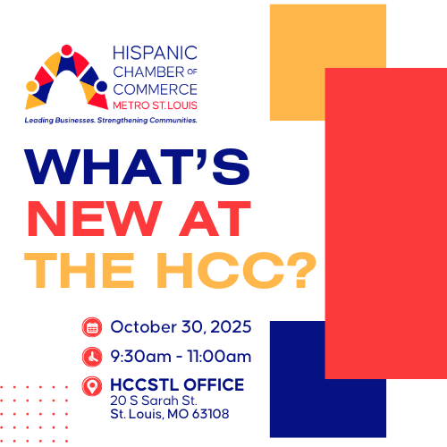 What’s New at HCC? is our way of celebrating milestones, welcoming new members, and sharing important updates across the Hispanic Chamber of Commerce Metro St. Louis community.